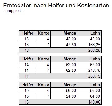 - Gruppierung nach Erntehelfern und Konten